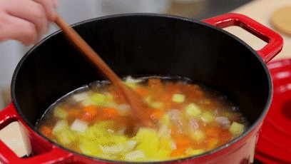 8、继续熬煮至蔬菜熟透,最后加入大白菜和适量盐。