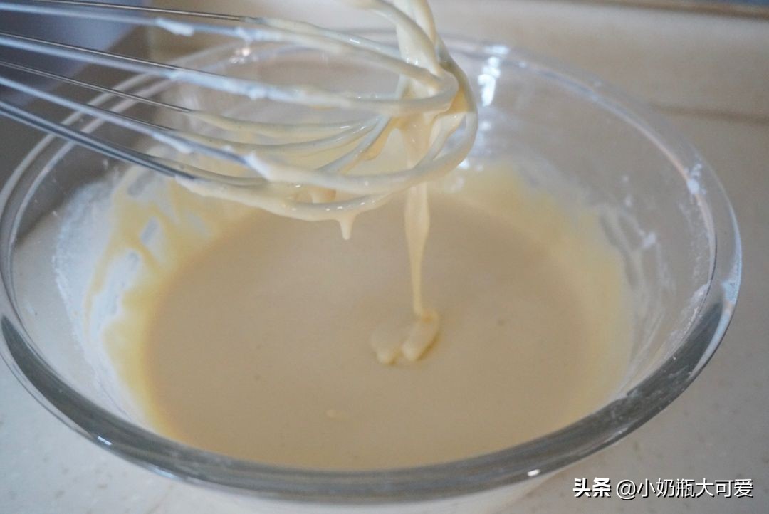 3.倒入牛奶和融化成液体的黄油,搅拌均匀。