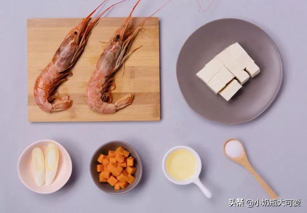 食材:南瓜、豆腐、虾、葱、姜