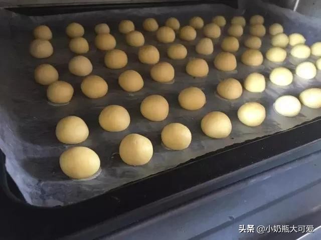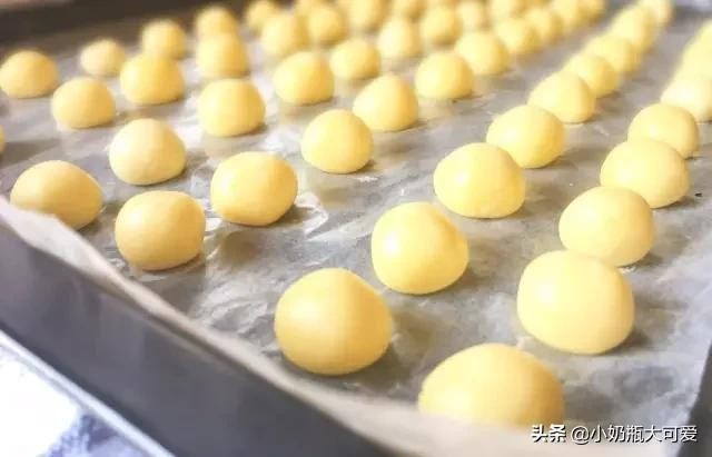 5.将拌好的面团,搓成小球,码放在烤盘中。
