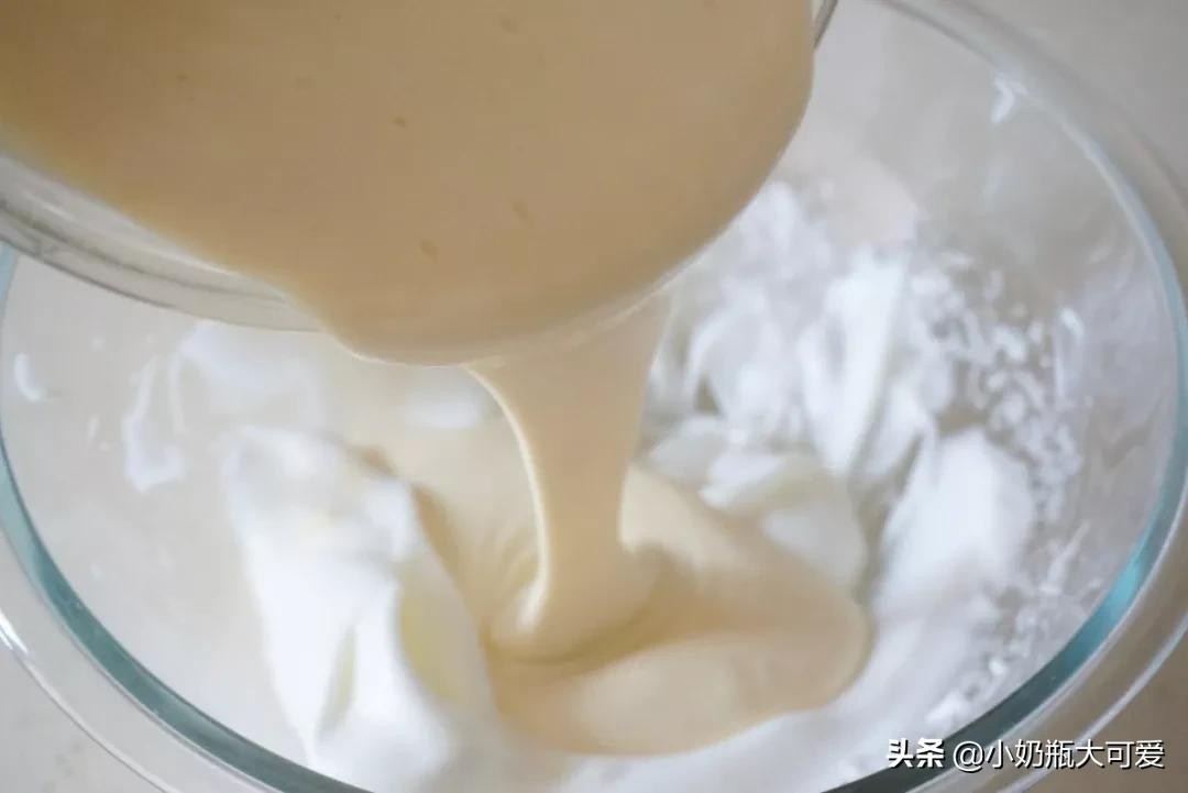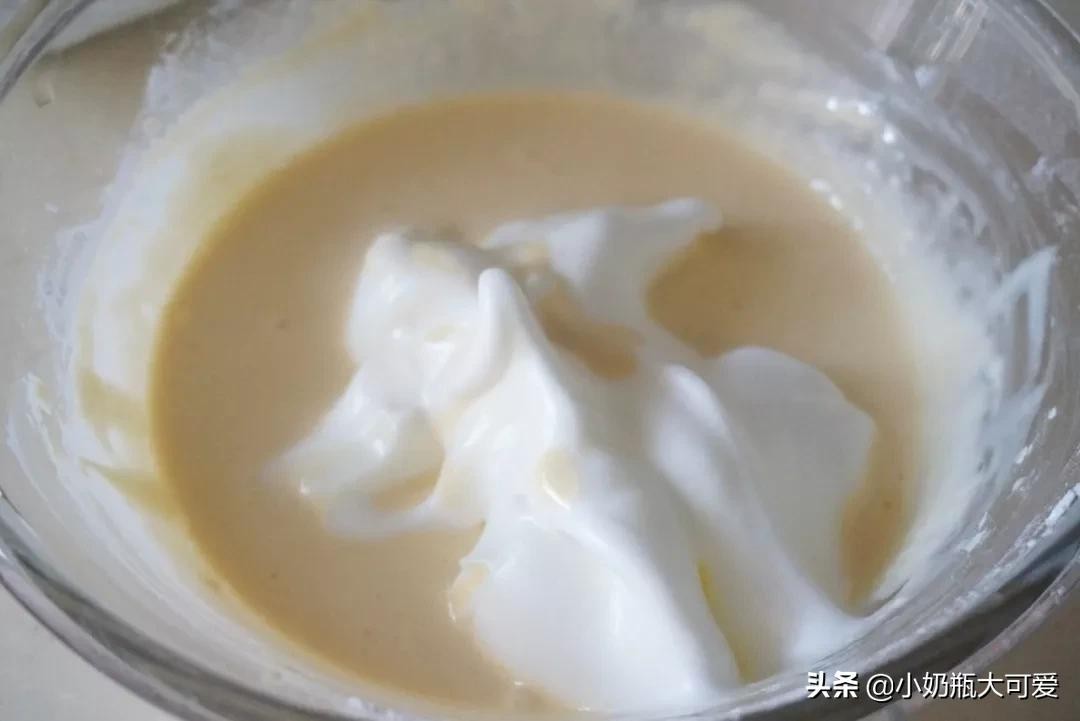 9、搅匀后倒回蛋白盆里拌匀。