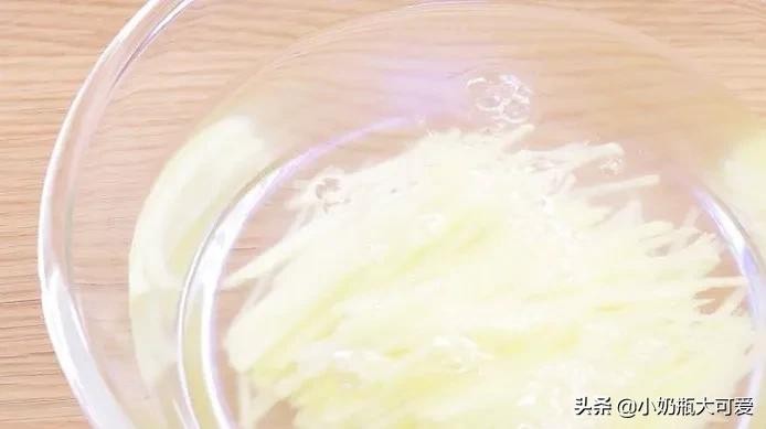 6、将土豆洗净去皮切丝,放入清水中,防止氧化变黑。