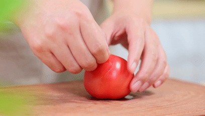 5、番茄表面划十字口,然后用沸水烫2分钟,方便剥皮。