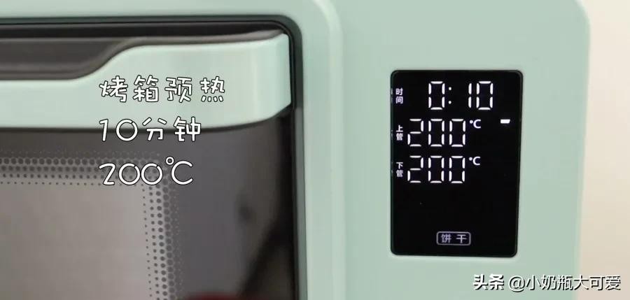 7. 我们提前把烤箱预热,设定温度为200摄氏度,预热时间为10分钟。