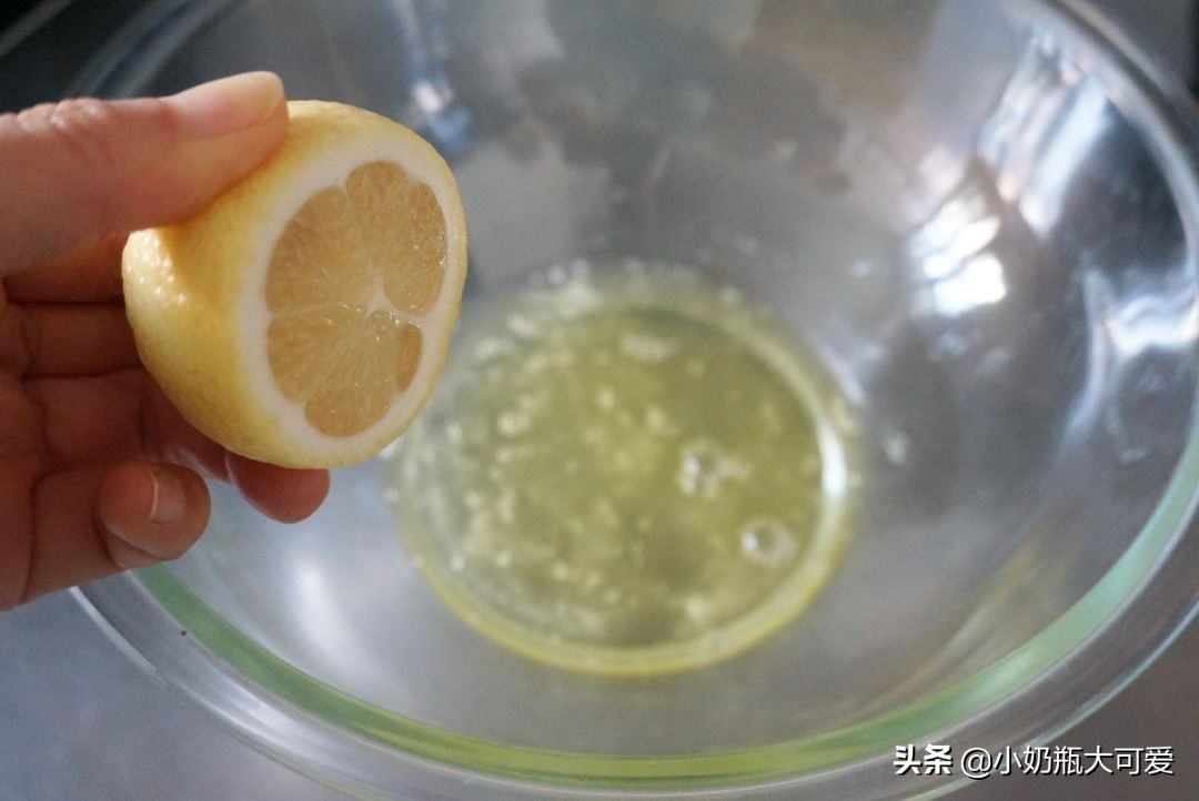5、蛋白挤入柠檬汁。