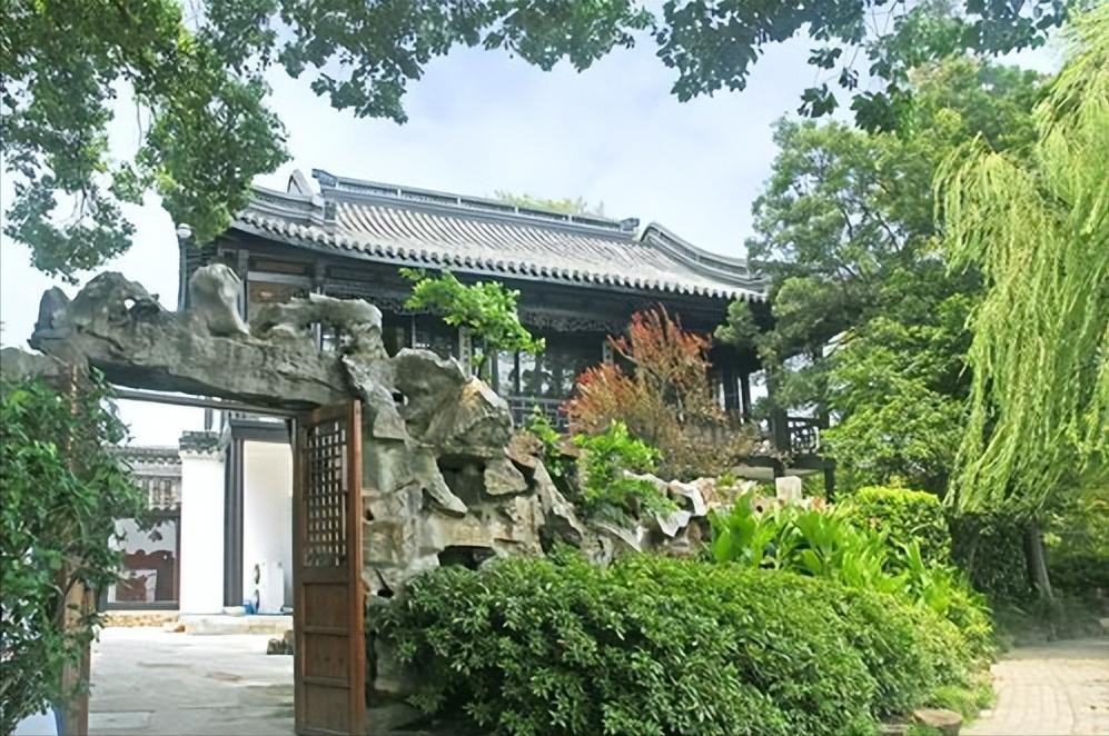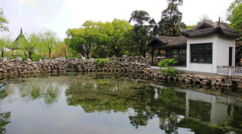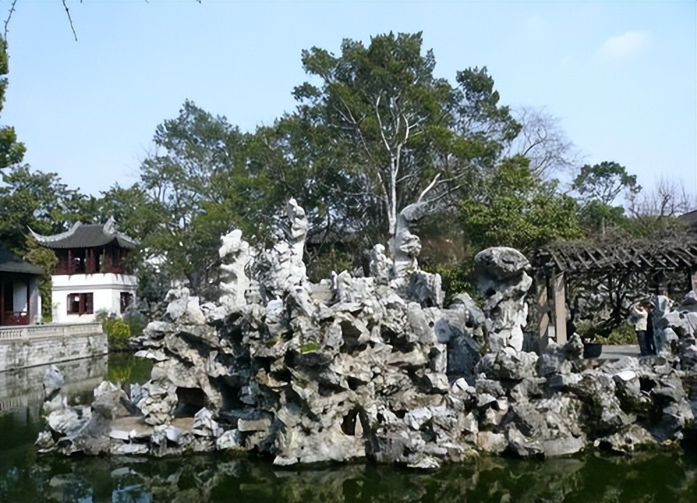 房后有湖山石叠成的假山坞,植有芭蕉、棕榈,颇具南国风光。房前土岗,立一湖石,瘦露皱透。岗下有仿古石台石座,可以闲坐观景。
