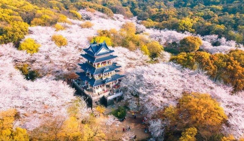 春天的鼋头渚樱花漫天,犹如走进一个粉色的梦里。还乘坐游船欣赏湖光山色,也可以漫步湖边,感受水乡的美好恬淡。