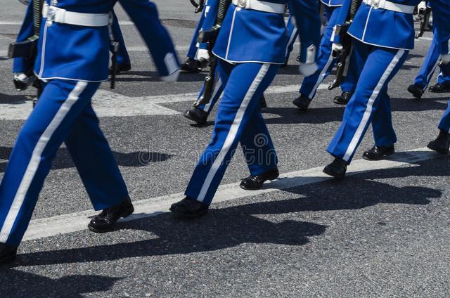 整齐的步伐是三军仪仗队最具辨识度的特点之一。无论在游行队形还是后勤保障过程中,队员们一丝不苟地保持着步伐的一致性。他们左脚先抬起,然后稳稳地落下,与身体的姿态和节奏相互呼应,所到之处,队伍仿佛一条无尽的蛟龙,令人瞩目。
