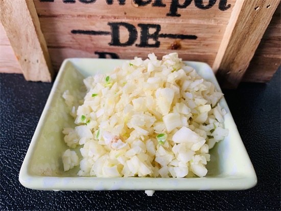 第二步、准备稍微多一些大蒜,做蚝油生菜大蒜不能少,这样蒜香味道会更浓郁,将大蒜拍碎,然后再剁成蒜末。