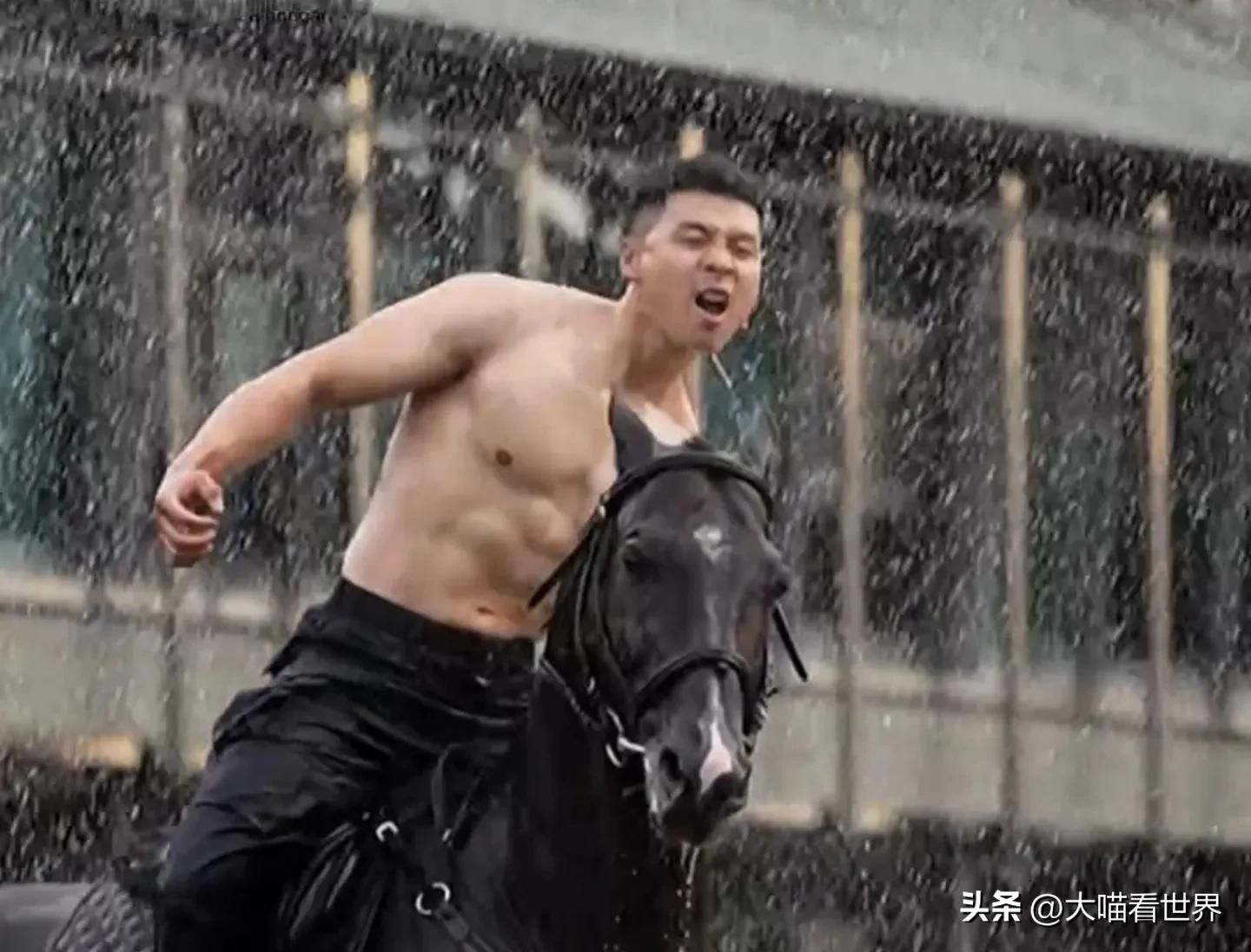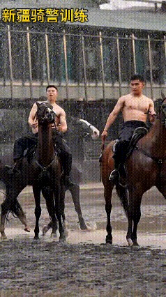 新疆骑警在雨中赤膊训练,健硕的身躯骑着俊马在雨中驰骋,诠释了什么才叫真正的“兵强马壮”。