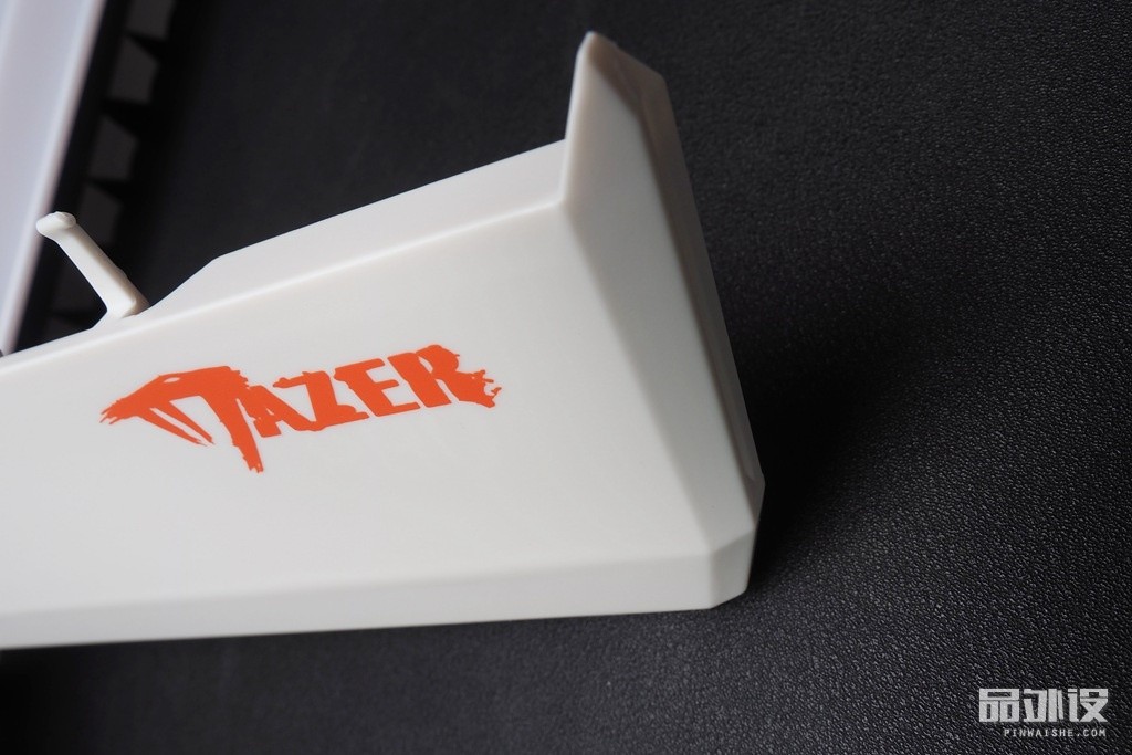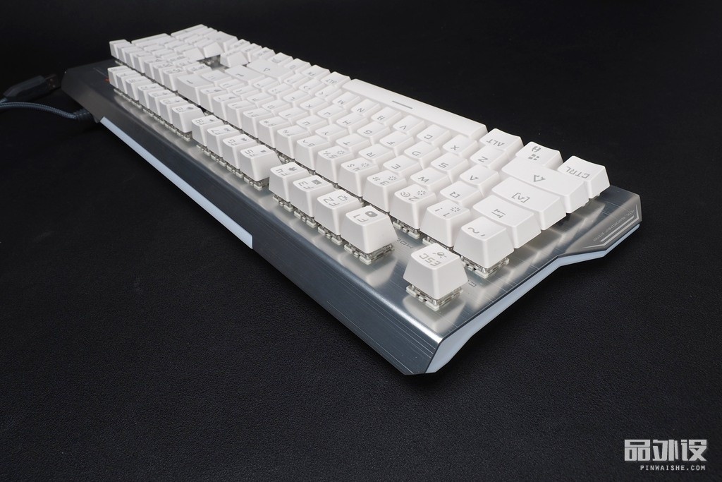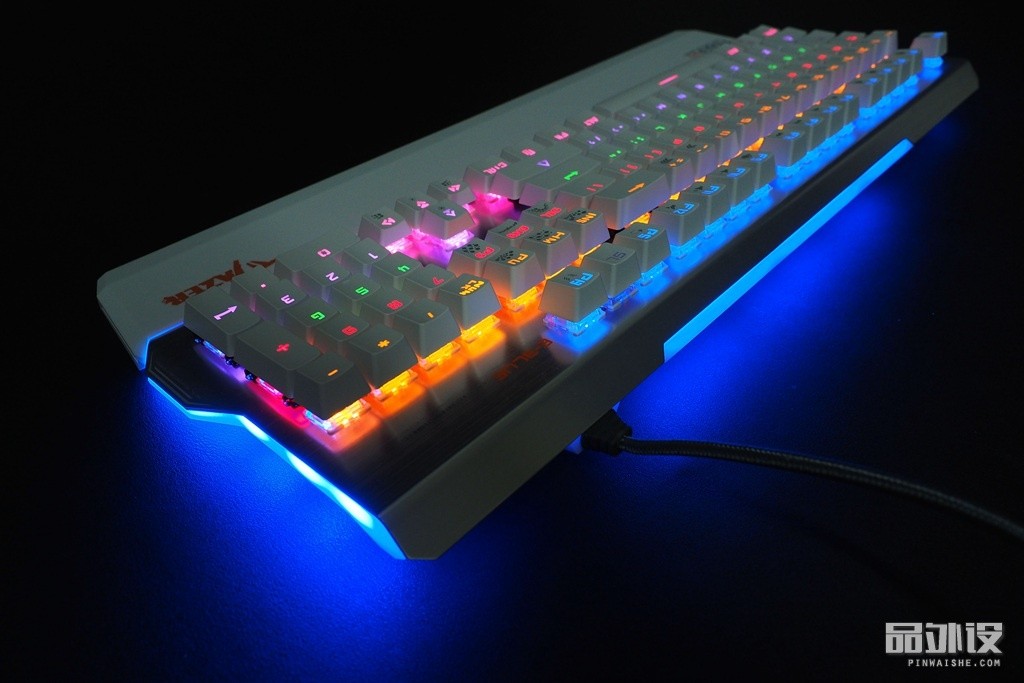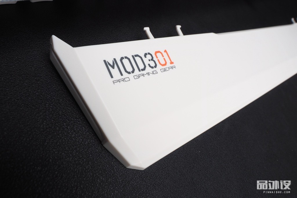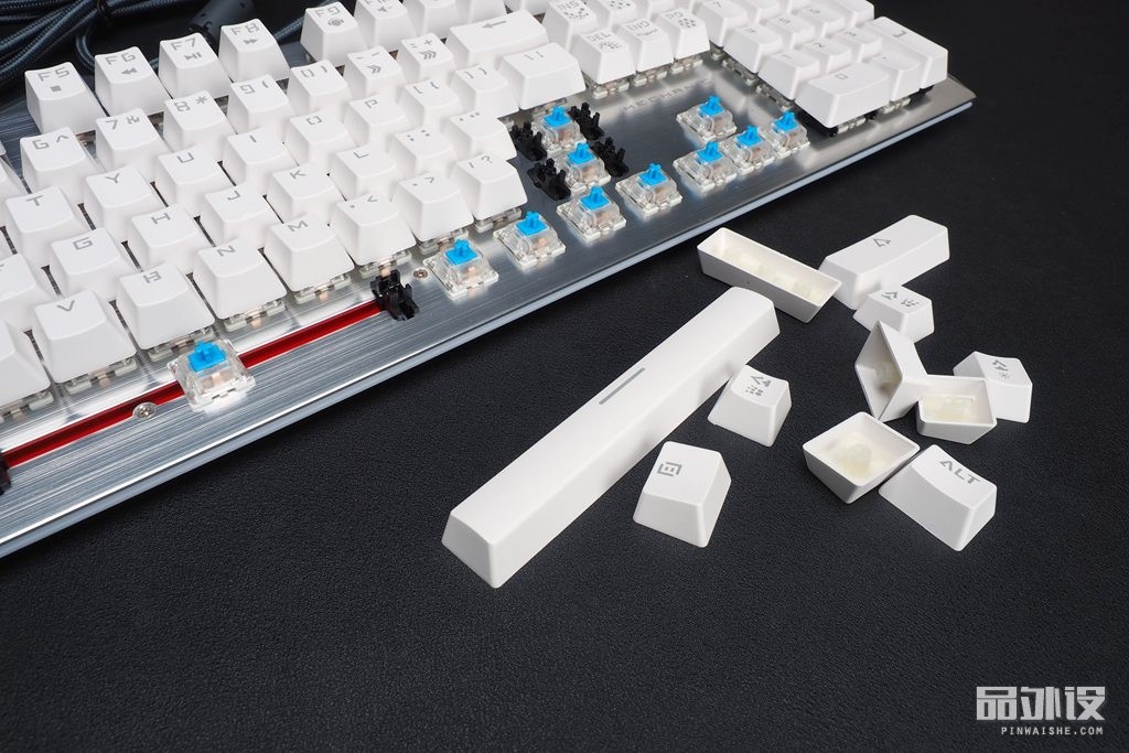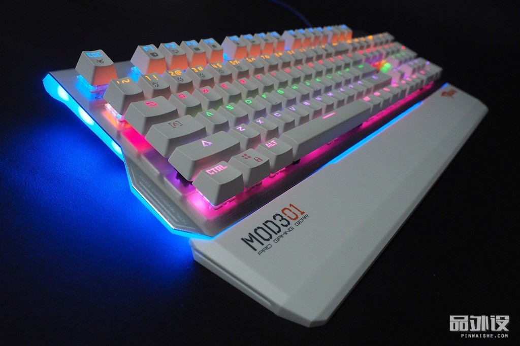 键盘侧翼与底壳是一体的,不过侧翼部分做成雾状可透光设计。