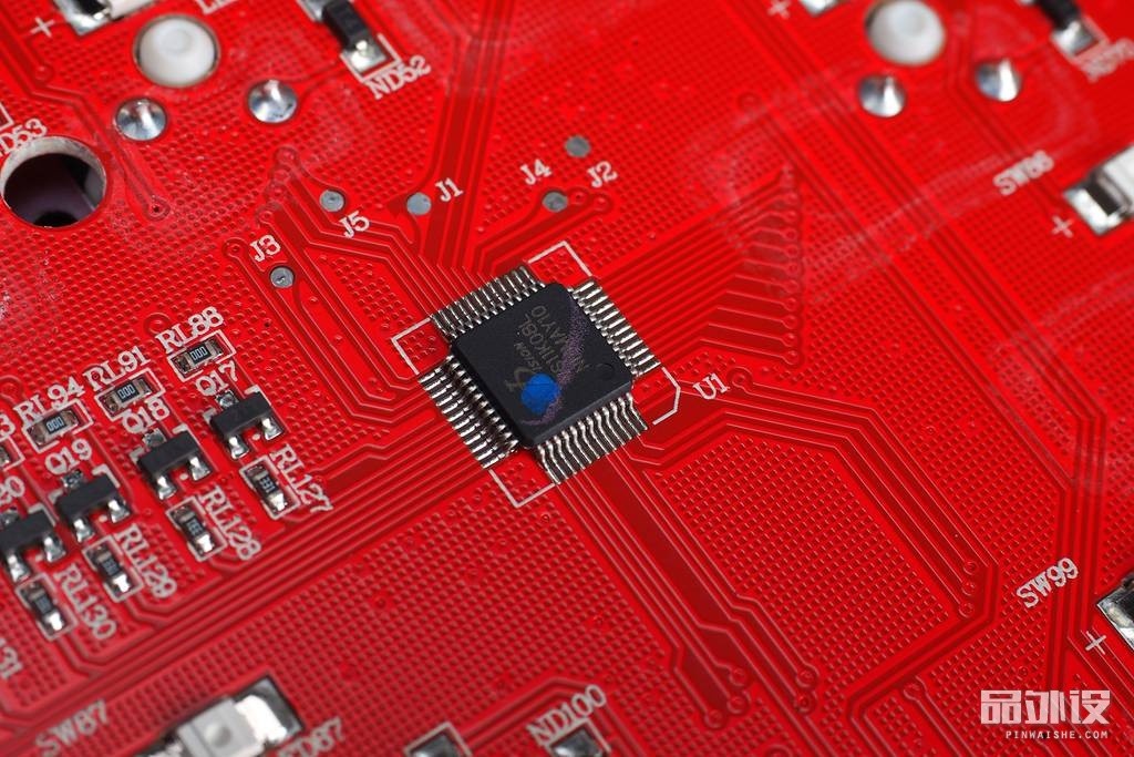 宜博K751机械键采用红色的PCB板,非常醒目,板面比较整洁。
