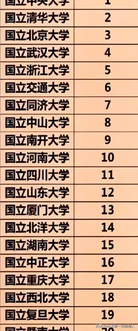 民国时期国立高校排名,前20强大学