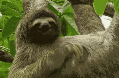 树懒可以说是一种懒到极致的哺乳动物,懒得吃、懒得动、懒得玩、懒得逃,几乎干什么都是一副懒洋洋的样子,好像什么事都无所谓,都懒得去做,就连被天敌追杀也都根本快不起来......甚至是消化也几乎慢到静止。树懒的胃足足占了身体的四分之一,但是这样的胃也没能帮助它们好好消化食物,树懒常常在饱餐一顿后,消化这一餐所用的时间竟然需要足足达到一个月之久。几乎可以说是“一月一餐”的生物了。
