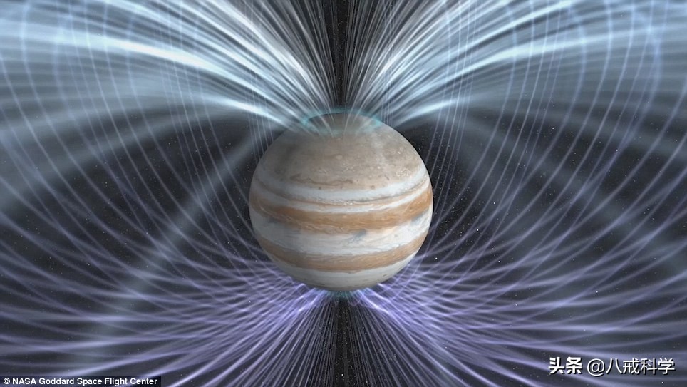木星还是一块巨大的“磁铁”,因为木星的磁场比地球强近20000倍。科学家表示,利用一个电子的强化带,木星捕获带电粒子不断以超过人类致命水平1000倍的辐射水平轰击这个系统。这种辐射强度如此之大,甚至会损坏像伽利略探测器这样的防护最严密的NASA航天器。并且木星的磁气圈在太阳的方向上延伸出令人难以置信的100万–300万公里。