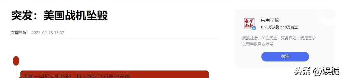 东南早报2025-02-13《突发:美国战机坠毁》
