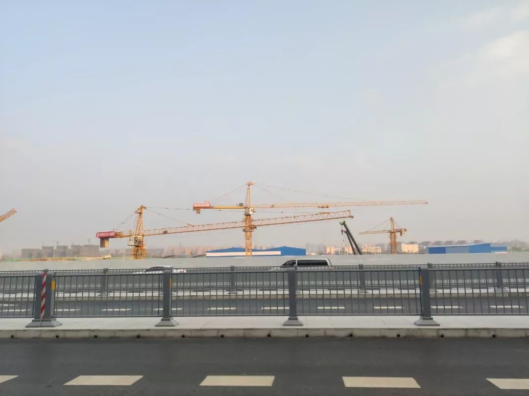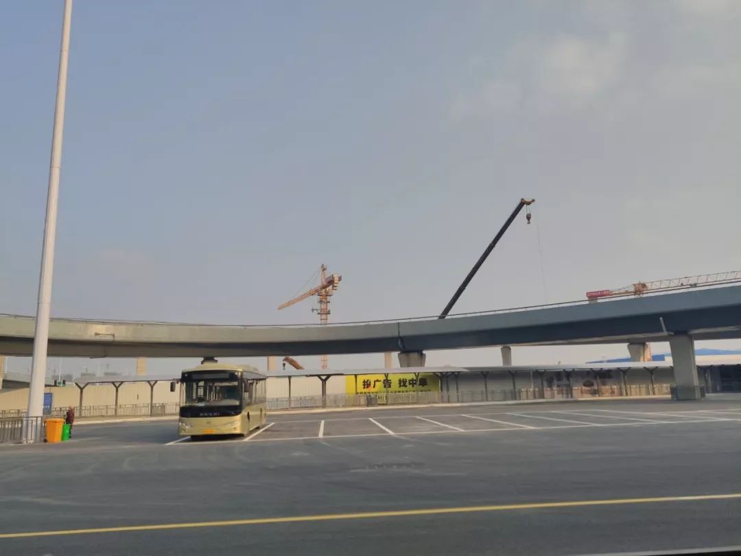 在匝道处,还可以眺望到远方的站前广场仍在如火如荼的建设中。