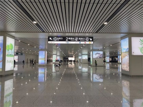 在进入阜阳西站大厅的过程中,可以看到一侧的广告牌都在大力宣扬阜阳本土的特色文化与风貌。