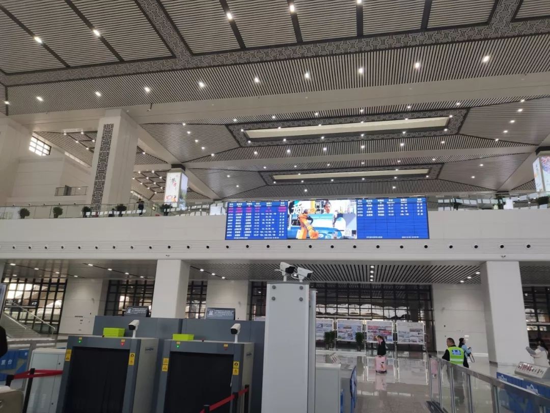 在大厅,同样可以看到详细的车次信息,二楼处,设置的有商业设施,虽然目前还没有开业,不过随着设施的完善,高铁西站也会变得更加全面。