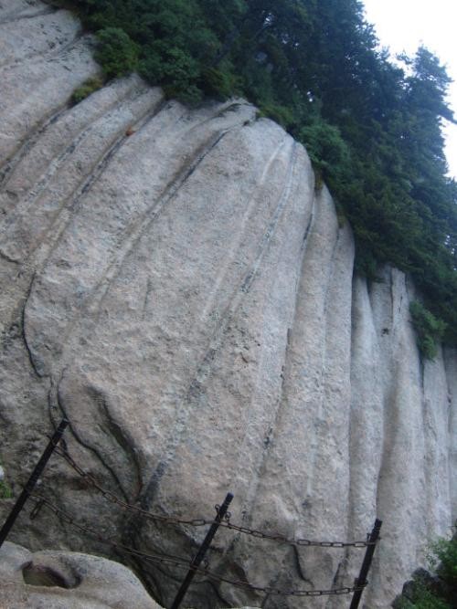 华山东峰还有著名的仙掌崖,乃是指东峰的面东崖壁。历经千万年的自然侵蚀之后,在悬崖上出现一面手掌型的石纹,高数十米,五指分明,形象生动逼真,恍如仙人的巨大手掌,所以人称华岳仙掌,被列为陕西“关中八景”的第一景。东峰上有三茅洞,洞内有陈抟老祖象,洞外有甘露池。附近的清虚洞前有一孤峰,峰顶上有铁瓦亭一座,铁棋一枰,这便是传说中的东峰下棋亭。