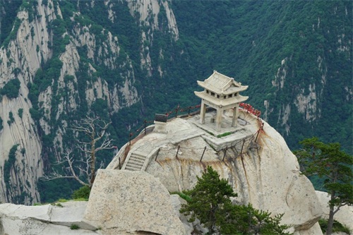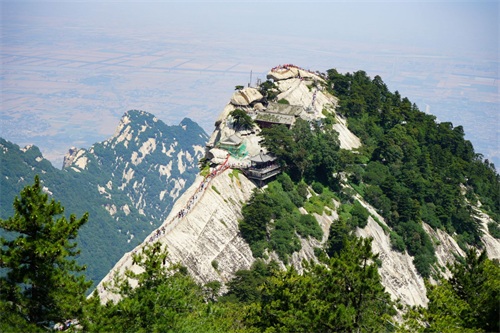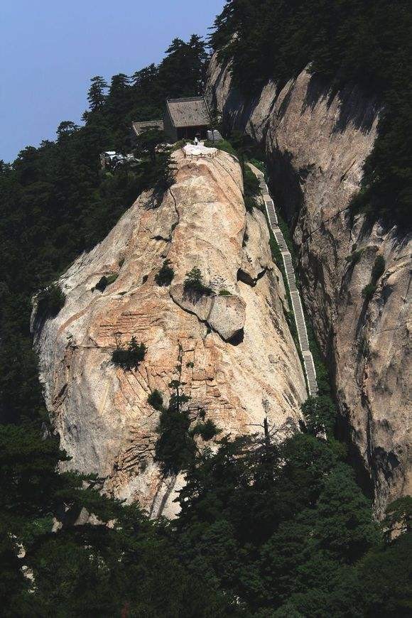 南峰海拔2160.5米,又叫落雁峰,是华山最高主峰,也是五岳最高峰,古人尊称它是“华山元首”。登上南峰绝顶,顿感天近咫尺,星斗可摘。举目环视,但见群山起伏,苍苍莽莽,黄河渭水如丝如缕,漠漠平原如帛如如绵,尽收眼底,使人真正领略华山高峻雄伟的博大气势,享受如临天界,如履浮云的神奇情趣。