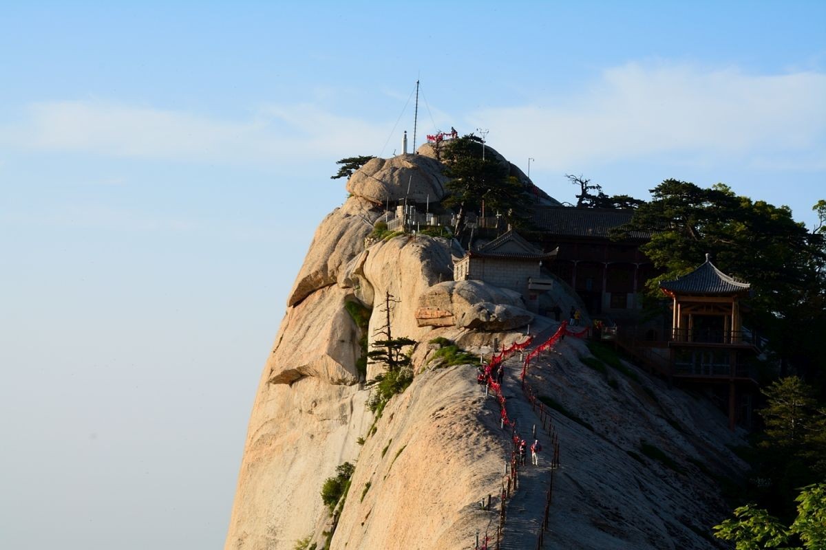 北峰海拔1614.9米,为华山主峰之一,因位置居北得名。北峰四面悬绝,上冠景云,下通地脉,巍然独秀,有若云台,因此又名云台峰。虽然海拔不高,不及其他诸峰,但其山势险峻异常,三面绝壁,只有一条山岭通向南面,形势十分险要,易守难攻。