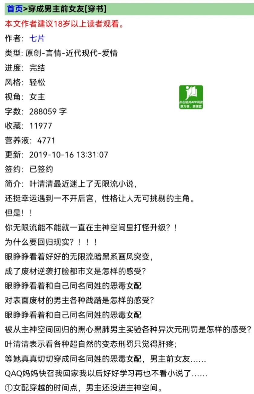 《穿成男主前女友[穿书]》作者:七片