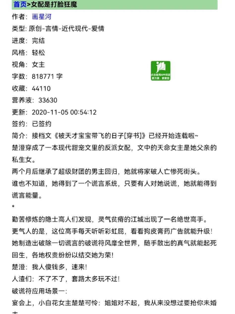 6、《女配是打脸狂魔》作者:画星河