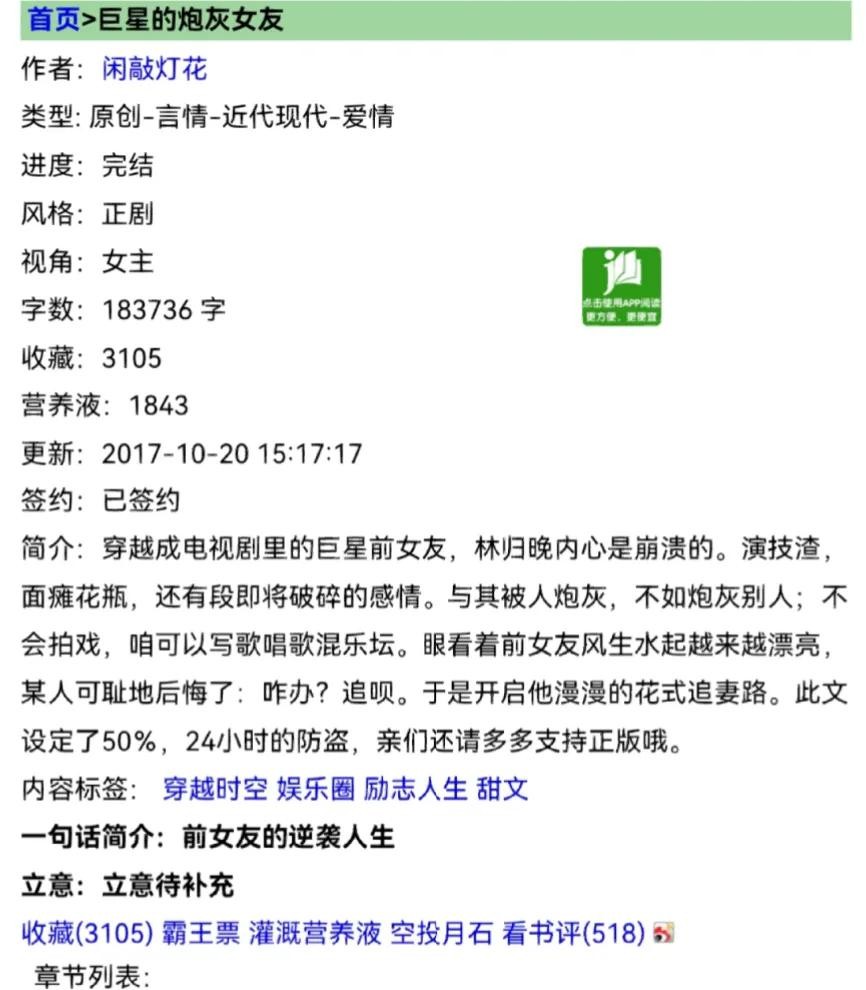 8、《巨星的炮灰女友》作者:闲敲灯花