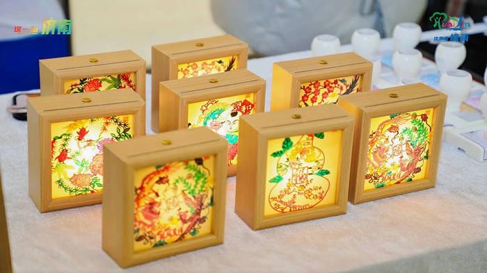 活动现场,一款款创意十足、独具特色的“槐荫礼物”,吸引了广大观众的目光。本次发布的槐荫礼物包含了文物创意礼物、口袋美食礼物、非遗盲盒礼物三个系列:文创礼物方面,是以包含兴福寺古建筑、纬六路丰大银行旧址、津浦铁路局济南机器厂旧址的槐荫文物古迹为原型,设计制作的冰箱贴、杯垫等,旨在展现槐荫文化历史厚重;美食礼物主打好吃好玩,包含了“台味茶点”、鲁味斋、伊品斋等传统面点、卤肉技艺非遗食品;非遗盲盒则是本次发布的一大亮点,包含国家级非遗“济南皮影戏”的皮影小夜灯、“民俗布艺”的布艺老虎和“葫芦砑花制作技艺”的创意砑花葫芦,每款礼物均由非遗传承人手工制作,每次盲盒的开启,就像揭秘一份期待,令人细细把玩、久久回味。
