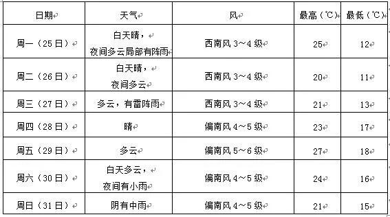 一周天气预报(5月25~31日)