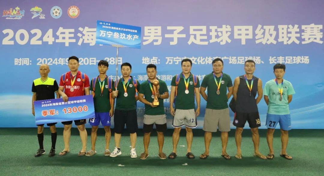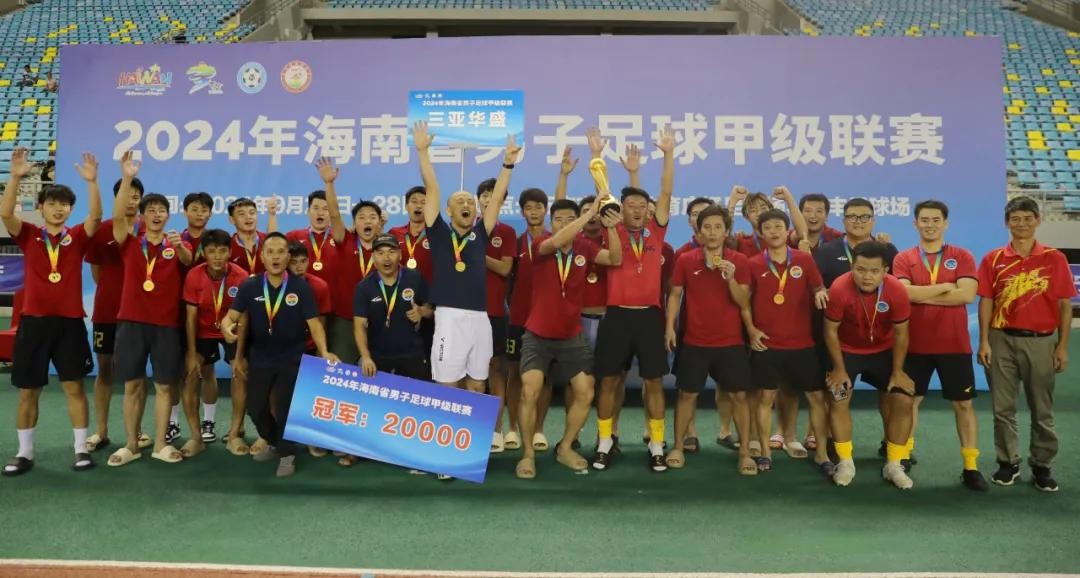9月28日晚,2024海南省男子足球甲级联赛在万宁收官。三亚华盛队获得冠军,儋州拖拉机队获得亚军,万宁叁玖水产队获得季军。