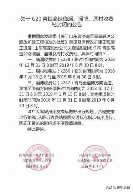 另外,G20青银高速临淄、淄博、周村收费站封闭延期!