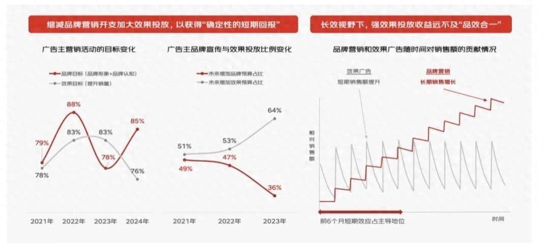 另一个难题是效果评估难。《2024中国数字营销趋势报告》显示,高达52%的品牌主苦恼于效果难以测量和验证。品牌广告的效果评估,一直是业界难题,难点在于很难精确评估某个品牌广告对销售增长的促进作用。品牌广告领域经常用“心智”来形容对消费者的影响,但心智的效果同样是无形的,很难评估。尤其是品牌广告对消费者的影响是长期的,这种长效的影响如何衡量和评估,同样非常难。