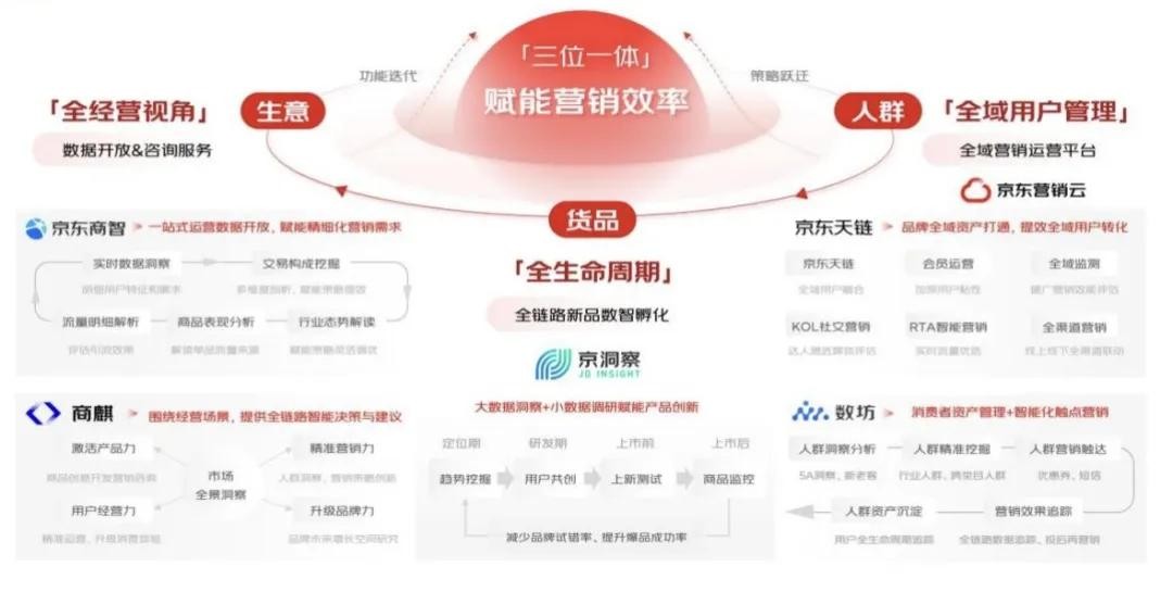 数智化的体系,让京东有了破局品牌广告难题的最强大武器。《2024年京东品牌广告营销策略报告》展现了京东“三位一体”的数智产品矩阵,包括京东营销云、京东数坊等构成的全域用户管理,京洞察实现的全生命周期的货品管理,以及京东商智、京东商麒构建的全经营视觉的生意管理,这让精准触达、个性化的消费者沟通成为可能。