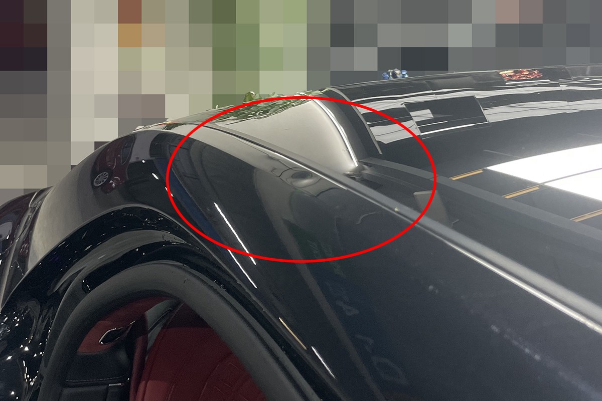 车顶梁的位置有个小凹坑,这个目测是可以做无痕修复的,影响也不大。