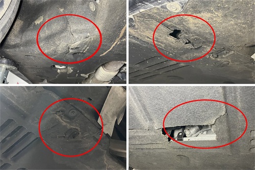 底护板破损的位置挺多,有的是正常托底造成的,有的是上次事故所致。