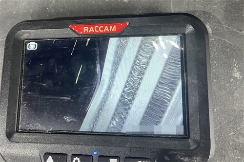 透过机舱缝隙,用内窥镜往里看,能够看到一些变形未修复的位置,冷凝器、水箱等位置。