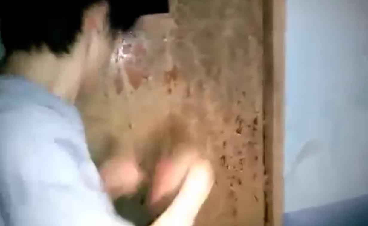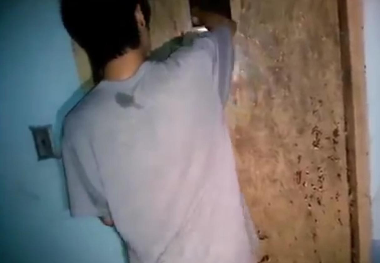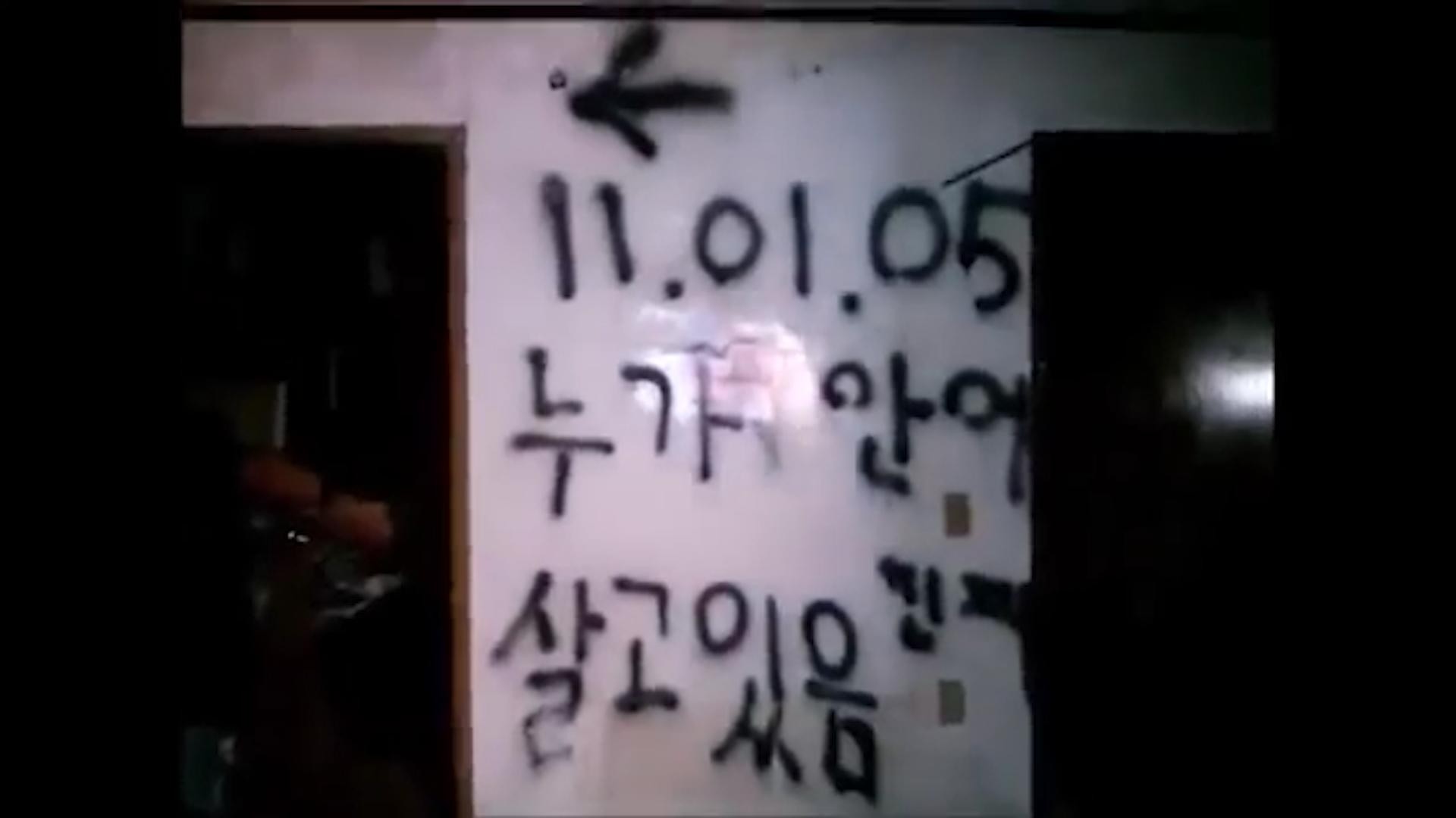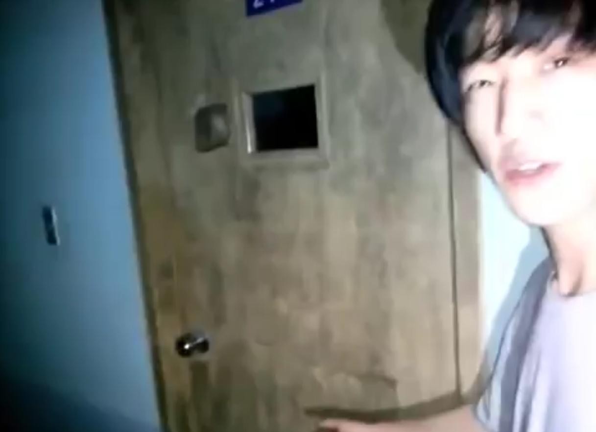 然后下一秒,门的另一面,传来咚咚的一声,两名韩国男子吓得尖叫着离开,视频到此戛然而止。