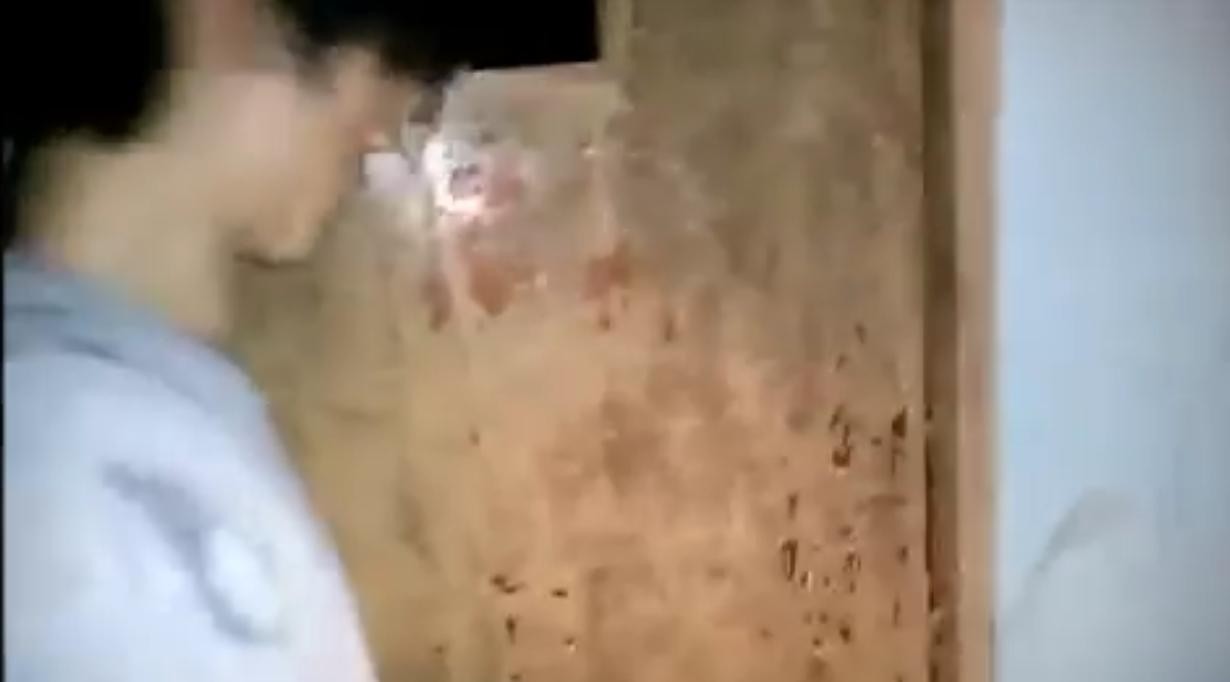 而且视频拍不到他的下半身,所以有可能是他用脚踢了一下门,然后假装受到了惊吓,逃跑,视频戛然而止,给看视频的观众,留下了无限的遐想。