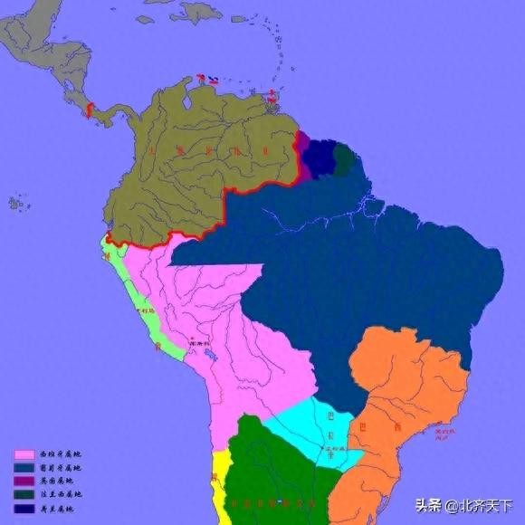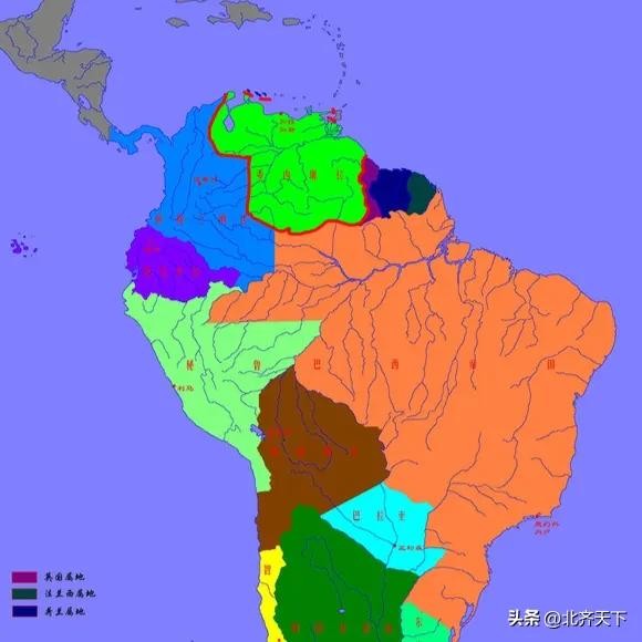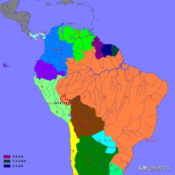 1907年,巴西国土达到极盛。与今天国土相比,就是图中的红线部分(南阿克里部分雨林3.9万平方公里),在1909年割让给秘鲁,下面让我们一起回忆一下,世界罕见的一直都在扩张领土,与周边所有邻国战争全胜的巴西扩张史。1820年,葡萄牙从西班牙手里夺取乌拉圭,并入葡属巴西。1822年,葡属巴西独立。1825年,乌拉圭独立。所以严格上说。乌拉圭并不能算巴西丢掉的领土。1859年,巴西入侵委内瑞拉,最后协议,以奥里诺科河与亚马逊河的分水岭为界,委内瑞拉丢失了南部大量土地。1861年,巴西入侵秘鲁,直到1867年,占领了秘鲁的东阿克里地区。同时,强行将秘鲁的西阿克里地区划给玻利维亚。1867年,巴西入侵玻利维亚,占领了玻利维亚东部边境10万平方公里。1871年,巴拉圭战争,巴西战胜后,占领了巴拉圭大量领土!1871年,巴拉圭战争,巴西战胜后,占领了巴拉圭大量领土!1903年,巴西入侵玻利维亚,占领了玻利维亚还没捂热的西阿克里地区,1907年,巴西入侵哥伦比亚,占领哥伦比亚东南部大面积领土。巴西通过各种不光彩手段占领了整个阿克里地区后,遭到了原主人秘鲁的抗议。为了安慰秘鲁,最终在1909年,巴西把南阿克里地区的小部分,还给秘鲁。从此巴西疆域成型。此外,巴西还出兵干涉过乌拉圭、阿根廷内政。并且在拿破仑战争时期吞并过法属圭亚那,并且还企图吞并荷属圭亚那。也就是说,巴西和周边所有国家开战过(南美所有国家,他就没打过厄瓜多尔和智利,因为不相邻),并且取得了几乎全胜的战绩,大量扩张了领土。