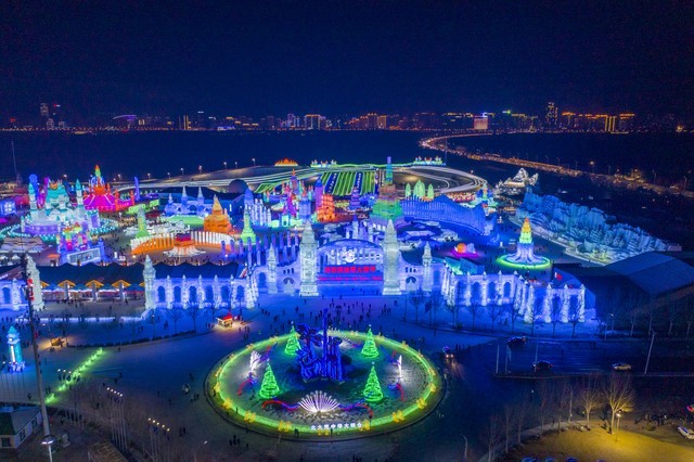 哈尔滨冰雪大世界是全球最大的冰雪主题乐园,每年冬季以冰雕、雪雕和灯光秀吸引国内外游客,展现北国冰雪艺术。