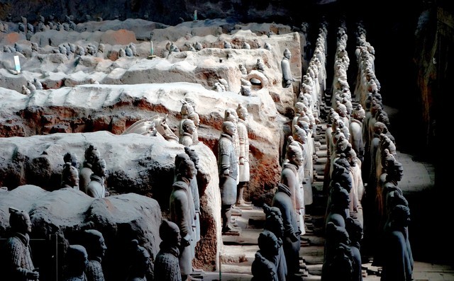 世界第八大奇迹,秦始皇陵的陪葬坑,数千件陶俑与战车展现了秦代军事与工艺水平,是西安旅游的核心景点。