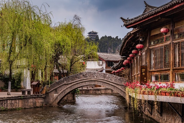 纳西族文化中心,保存完好的明清建筑与玉龙雪山背景,被列入世界文化遗产,是“慢生活”的代名词。