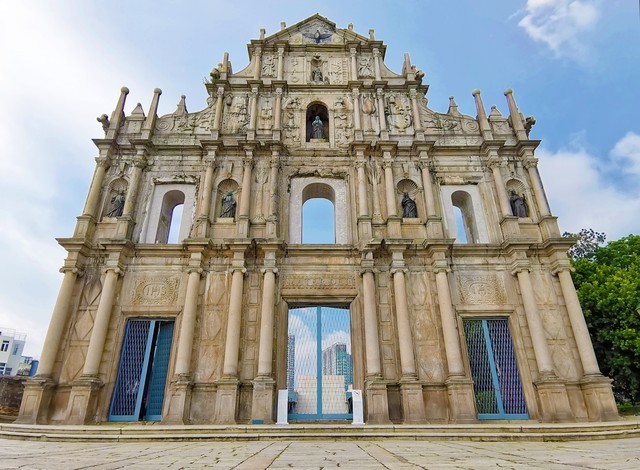 圣保禄教堂遗址,融合欧洲文艺复兴与东方建筑风格,是澳门历史城区的核心象征。