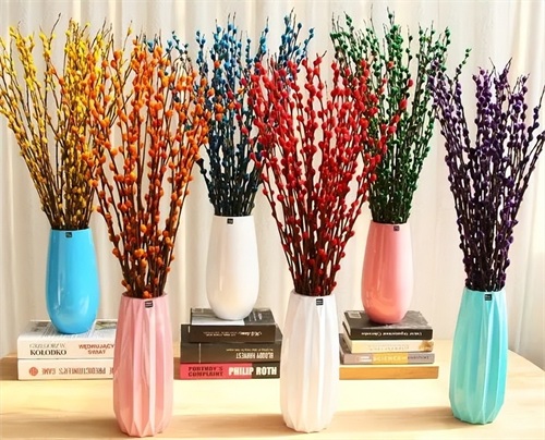 为了让它长期可以摆放在家里而不凋零,人们还会把银柳做成干花,搭配灯笼、塑料花这种装饰物,效果非常赞,过节的喜庆感油然而生。中国红银柳是最受欢迎的,满满一大束,插在家中, 红红火火过大年的感觉。