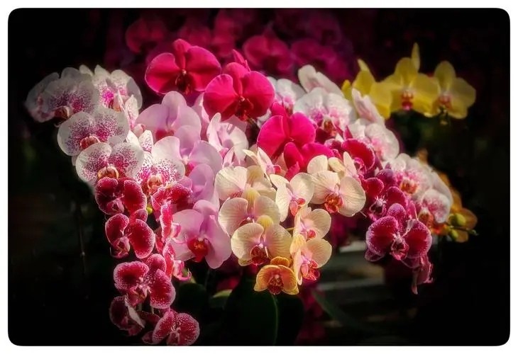 大花惠兰开花的时候,花朵层层叠叠簇拥在一起,花色不一,有粉色,黄色,大红色等等,非常耐看,花量巨大。