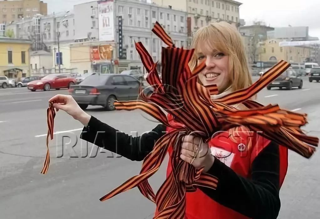 同时,胜利日前后很多公园和街头都会免费发放这种橙黑相间的飘带,它的名字叫“圣乔治丝带”,象征着战争的胜利和荣光。在胜利日这一天,大部分人都会佩戴着。