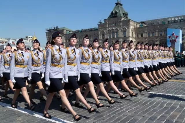与男兵的严肃威武迥异的是,俄罗斯女兵经过红场时都面带微笑,让人眼前一亮。