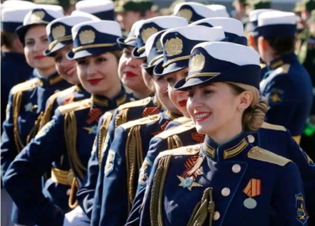 今年俄罗斯胜利日阅兵中的徒步方队最大的亮点,应该算是女军人受阅方队。